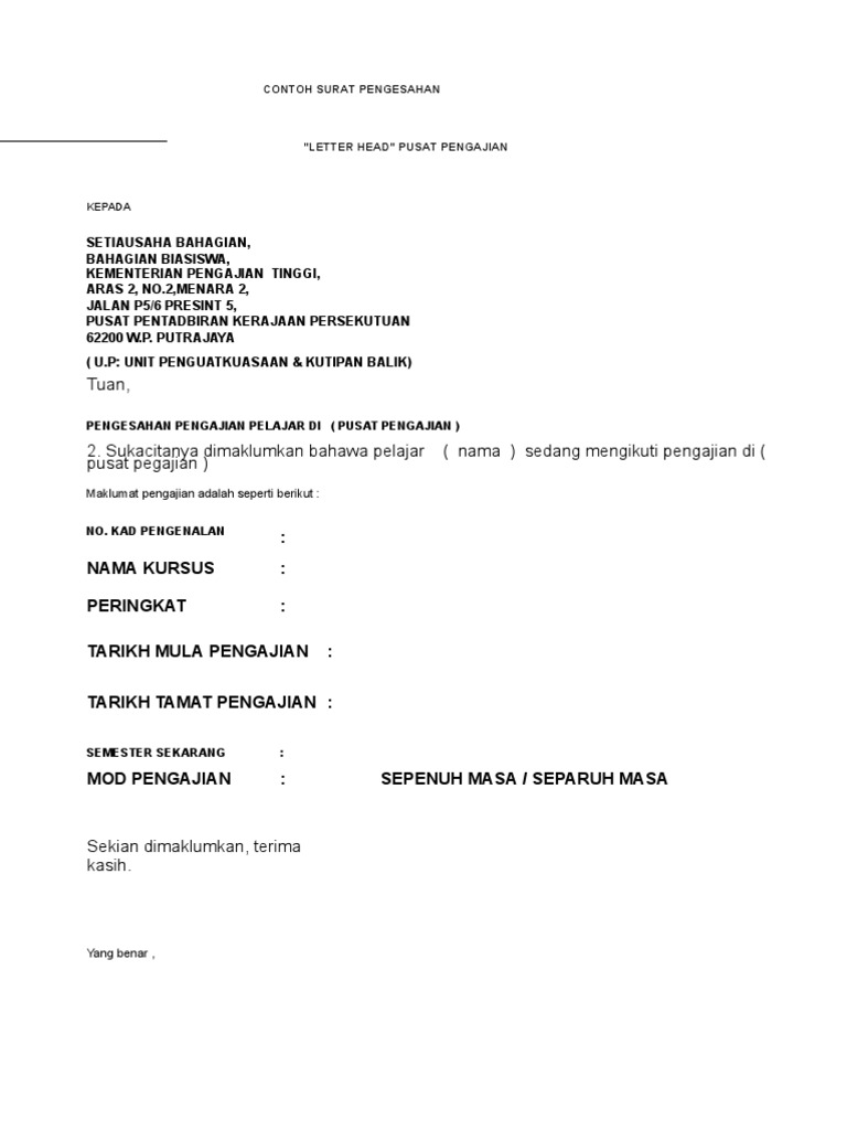 Contoh Surat Pengesahan Pelajar Dari Pusat Pengajian Pdf